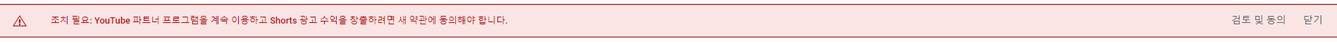 2월 1일부터 시작되는 유튜브 쇼츠 수익 창출을 위해서는 신규 약관 동의가 필요합니다.